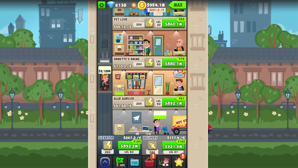 Les managers font le travail banal pour vous, il vous suffit donc de vous concentrer sur l'amélioration des étages appropriés. De plus, les managers vous permettent d'activer un boost qui améliorera un étage pendant un temps limité.